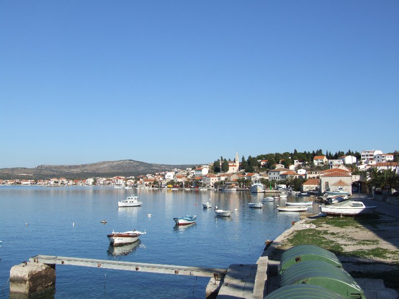 Naseljena već u antičko doba. Župna crkva građena je 1615., u XIX. st. pregrađena. Na vrhu naselja ostaci utvrde koju su počeli graditi Francuzi 1809. U rogozničkome se polju nalaze srednjovjekovne crkve sv. Nikole (sa stećcima) i bl. Ivana Trogirskoga, izgrađene u oblicima srednjovjekovne dalmatinske arhitekture; u zaljevu je 1993.-96. izgrađen umjetni otok za marinu.